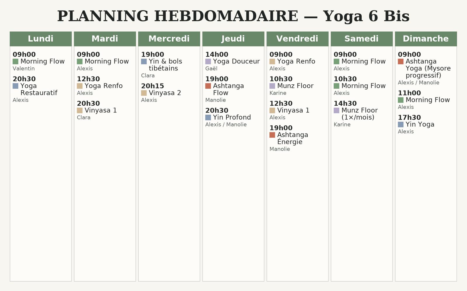 Ashtanga, Vinyasa, Yoga Renfo, Yin, MUNZ Floor… Ouvert tous les jours.