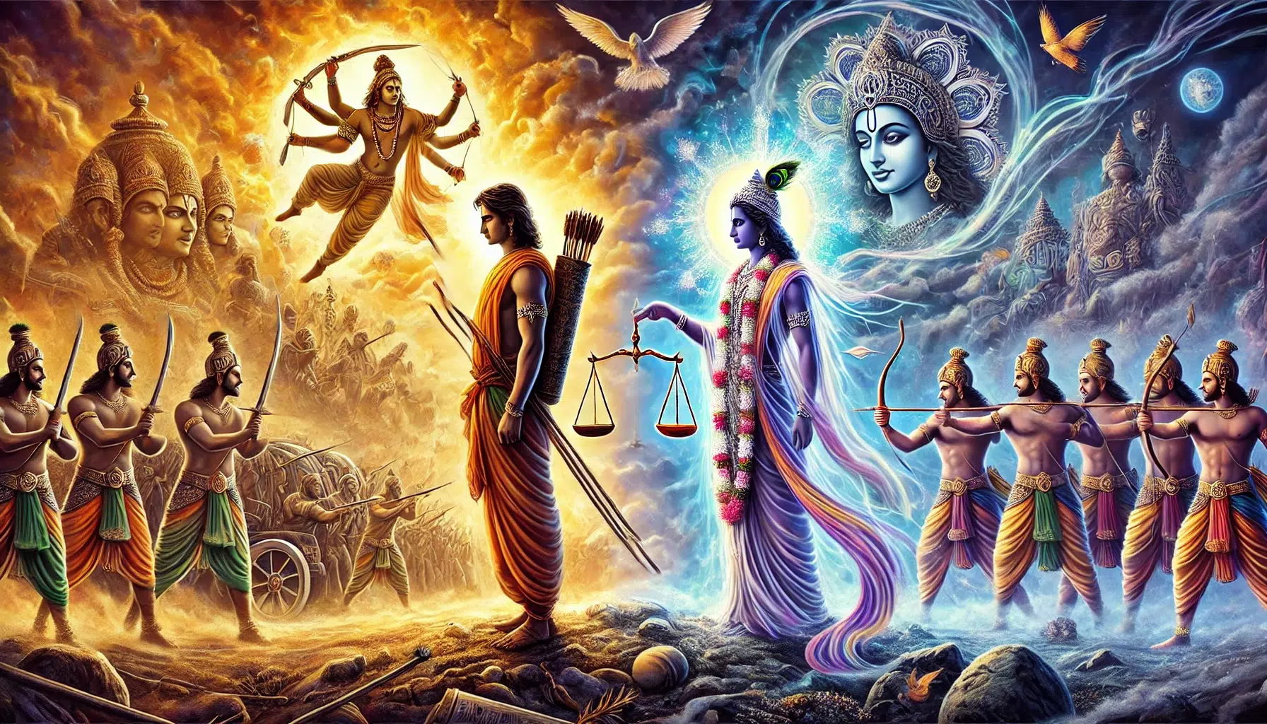 Dans la Bhagavad Gita, Arjuna nous offre un miroir : celui d’un homme aux prises avec des questions de justice, de devoir, et d’intégrité personnelle. Ce récit, bien plus qu’une simple histoire de guerre, est une allégorie de notre propre lutte pour aligner nos actions avec ce que nous ressentons être juste, même quand cela va à l’encontre de nos attachements ou de nos désirs.